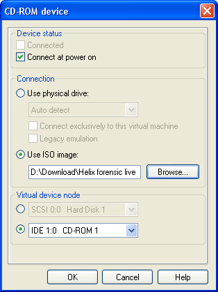 virtuelle maskines CD-ROM device til at pege ned på isofilen